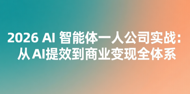 2026 AI 智能体一人公司实战训练营,一套从 AI 基础到商业变现的完整体系课。从 AI 底层逻辑、绘画设计、办公提效、营销文案,到账号定位、爆款内容、直播运营、流量变现全