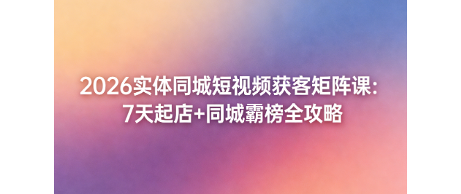 2026 实体同城短视频获客引流矩阵课专为实体商家打造!拆解本地生活门店短视频获客底层逻辑,解析本地生活 4 大榜单玩法,教 7 天鱼塘起店、实体连锁霸城抢客策略,覆盖餐