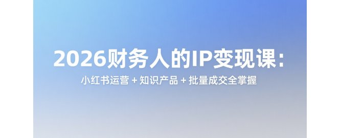 2026 财务 IP 商业运营课,专为会计、代账、财务人打造的 IP 变现全流程课。从财务 IP 定位、小红书起号、爆款笔记打造,到知识产品设计、做课训练营、一对一成交、产品矩