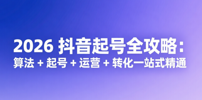 2026 抖音起号与运营实战课,从平台算法、账号基因、内容创作,到起号流程、付费投放、流量转化、直播起号全链路拆解,结合实战案例与千万级实操经验,教你安全起号、稳定