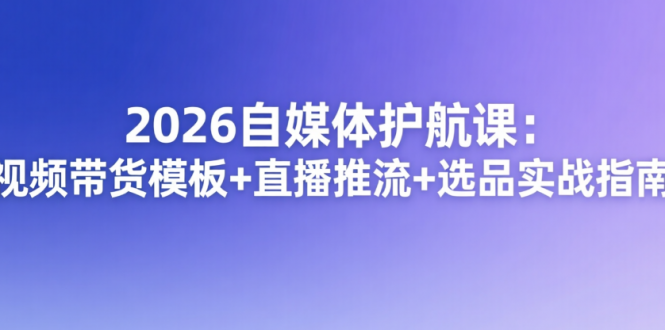 2026自媒体实战破局护航课,聚焦自媒体变现全流程实操,助力新手快速破局!详解三类选品思路与查品技巧,拆解视频带货特点、适用产品及痛点、痒点带货模板,覆盖直播推流指