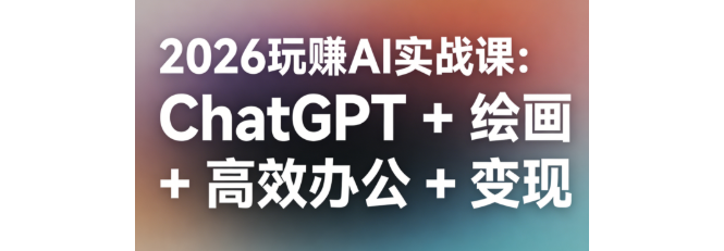 2026 玩赚 AI 课程人人都能学会,零基础也能轻松上手!从 AI 基础认知、ChatGPT 对话与使用技巧讲起,涵盖 PPT、思维导图、数字人高效制作,系统教学 Midjourney 绘画全流