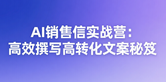 AI销售信训练营,聚焦AI赋能销售信撰写全流程,手把手教你高效产出高转化销售信!从买家路线图搭建、AI杀手标题创作入手,详解AI开头、产品介绍、异议处理、子弹头、客户见