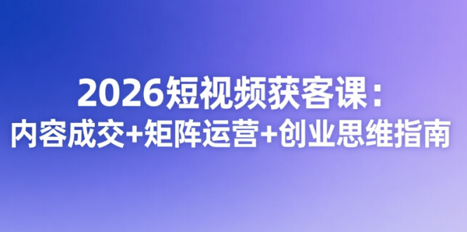 2026短视频获客课,聚焦短视频全链路获客与变现,兼顾创业思维与实操落地!从创业心法、超级个体户打造入手,详解实体店短视频认知、矩阵运营、内容类型与成交路径,解锁私