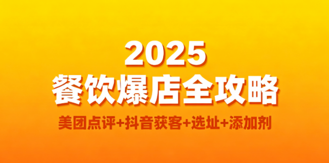 2025 餐饮爆店课覆盖餐饮运营全链路!从选址测算、商圈调查等开店基础,到美团点评搭建、上榜技巧、差评处理,短视频创作等流量获取,包含食品添加剂实用技巧。全方位掌握