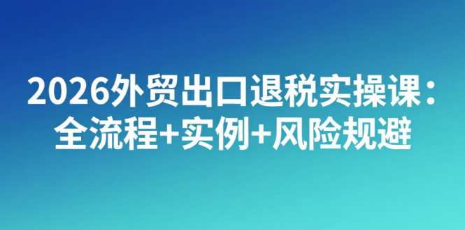 本课程专为外贸企业、跨境电商商家打造,聚焦出口退税全流程实操落地!从公司注册、流程梳理、基础原理入手,详解外贸/生产企业退税申报、发票开具、账务处理、单证备案等