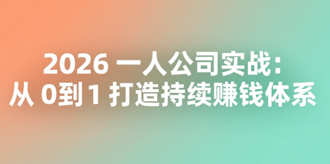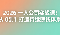 2026 一人公司实战课,专为普通人打造轻资产、可复制、能长期盈利的创业体系。从创业方向、冷启动、商业模式搭建,到自媒体起号、爆款打造、知识产品设计,再到公域引流 +