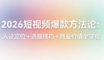 2026 短视频爆款方法论聚焦爆款打造全流程核心技巧!从人设、内容精准定位,对标账号分析入手,详解账号主页搭建 9 大方法,拆解爆款选题的挖掘渠道与核心标准,再到内容迭