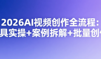 2026AI视频创作全流程实战落地课,覆盖AI视频创作从基础到进阶全环节!详解Sora、Gemini、豆包等主流AI工具实操,拆解提示词写作、镜头调度、画面一致性控制技巧,搭配70+