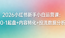 2026 小红书新手小白运营课专为零基础打造!从用户转化视角、平台推流机制入门,解读官方规则与入驻流程,拆解一线操盘手 0-1 起盘爆量方法,教你搭建内容模型、投流操作与