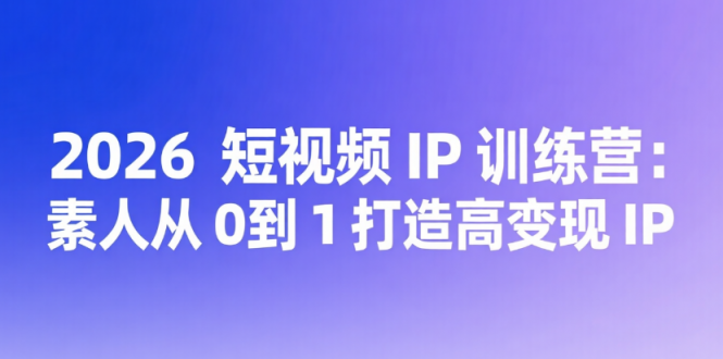2026 短视频 IP 训练营,从 IP 定位、打造逻辑、表现力训练,到爆款文案、拍摄剪辑、AI 高效生成内容,再到暴力起号、不露脸带货、同城推广全覆盖,零基础素人也能快速打造