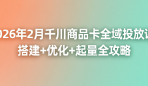 2026年2月短视频千川商品卡全域投放及搭建实操课,聚焦千川全域投放全流程落地!详解全域计划搭建、出价测试、流速控制,拆解素材优化、冷启动突破、ROI调控、人群包搭建技