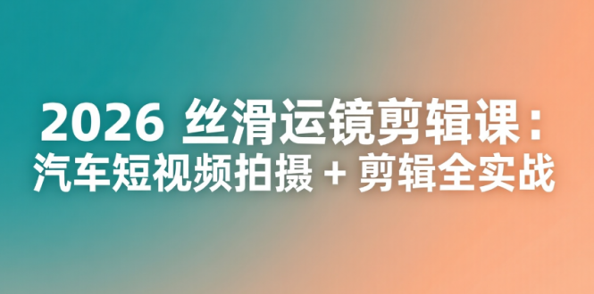 2026 丝滑运镜剪辑课,主打汽车类短视频 + 稳定器运镜 + 高级剪辑特效,从手机参数、稳定器模式、运镜步伐,到卡点、转场、蒙版、调色、封面制作全覆盖,大量实车拍摄 + 实