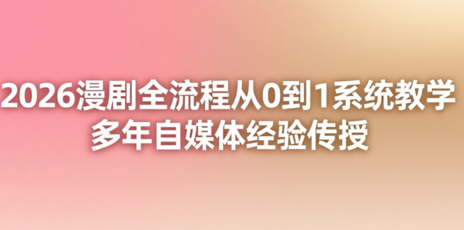 2026 漫剧全套系统课,结合多年自媒体实战经验,从工具使用、剧本小说、场景角色、AI 改文、分镜出片到账号起号全流程手把手教学,零基础也能快速上手做漫剧、做流量、做变