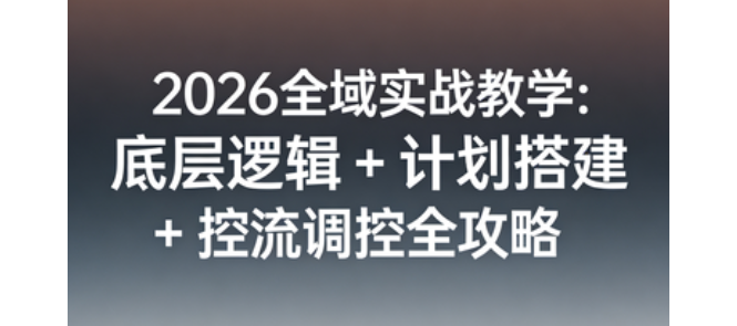 2026 全域实战教学聚焦全域投放全流程落地,从投放前底层逻辑拆解入手,详解全域计划搭建逻辑与具体方法,拆解计划调控技巧、控流配比及介入时机,搭配两组控流实战记录与