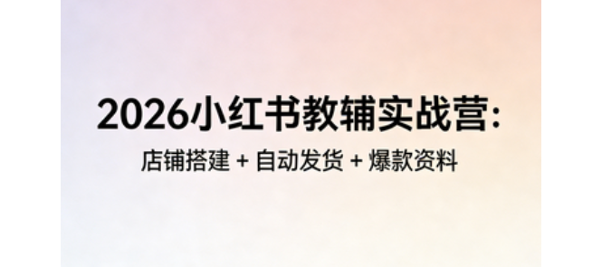 2026 小红书教辅赛道实战训练营聚焦教辅虚拟项目变现!手把手教普通人 3 天快速出单,30 分钟完成店铺搭建与自动发货系统,精准锁定上架即爆款的黄金教辅资料,从零打造高