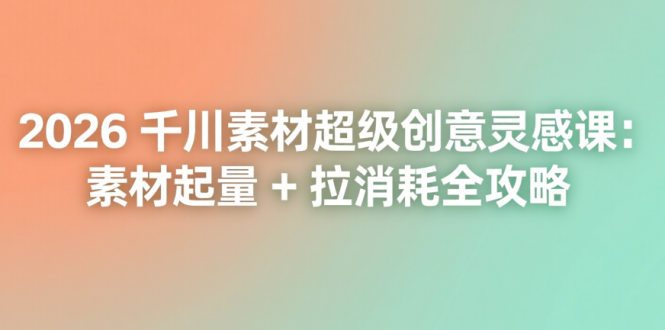 2026 千川素材超级创意灵感课,专为千川投放、短视频带货打造,聚焦素材创意与消耗提升。从新素材不起量原因、创作误区,到产品属性、素材类型、文案句式的实战应用,手把