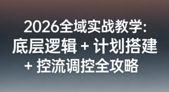 2026 直播电商千川全域投放课聚焦千川全域投放全流程实操!从全域基础认知、核心数据指标解读入手,拆解全域投放差异化、核心技巧与消耗配比,教你运用直播及全域大屏、处