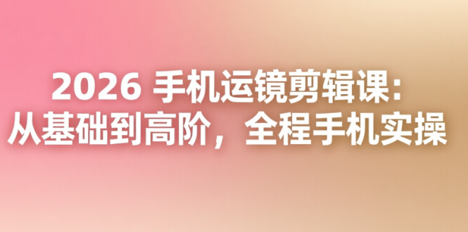 • 2026 手机运镜剪辑课:从基础到高阶,全程