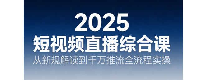 2025 专业短视频及直播综合课程覆盖双赛道全链路!紧跟平台月度新规与核心算法更新,详解 0-1000w 推流细节、短视频起号运营、直播底层逻辑与起号策略,拆解抖加全维度投放