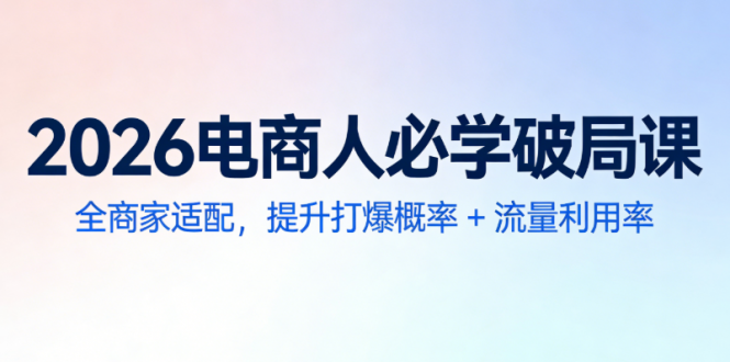 每个电商人必学的破局课,专为陷入经营泥潭的商家打造!适配所有电商商家,直击流量利用率低、爆款难打造的核心问题,拆解提升打爆概率的实操方法与高效流量运营策略。无需