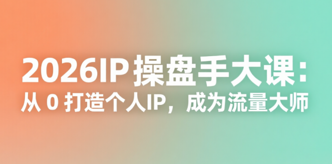 2026IP 操盘手大课,聚焦个人 IP 从 0 到 1 搭建、流量高效获取,手把手教你成为流量大师!从个人品牌打造、竞争对手分析、IP 起名与简介优化,到核心文案库构建、各类流量