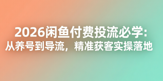 2026 闲鱼付费投流获客实战课程,专为想快速提升闲鱼曝光、精准获客的商家打造,全程实操落地!从账号搭建、养号技巧、爆款打造,到付费投流(擦亮 + 内部渠道充值)、自动